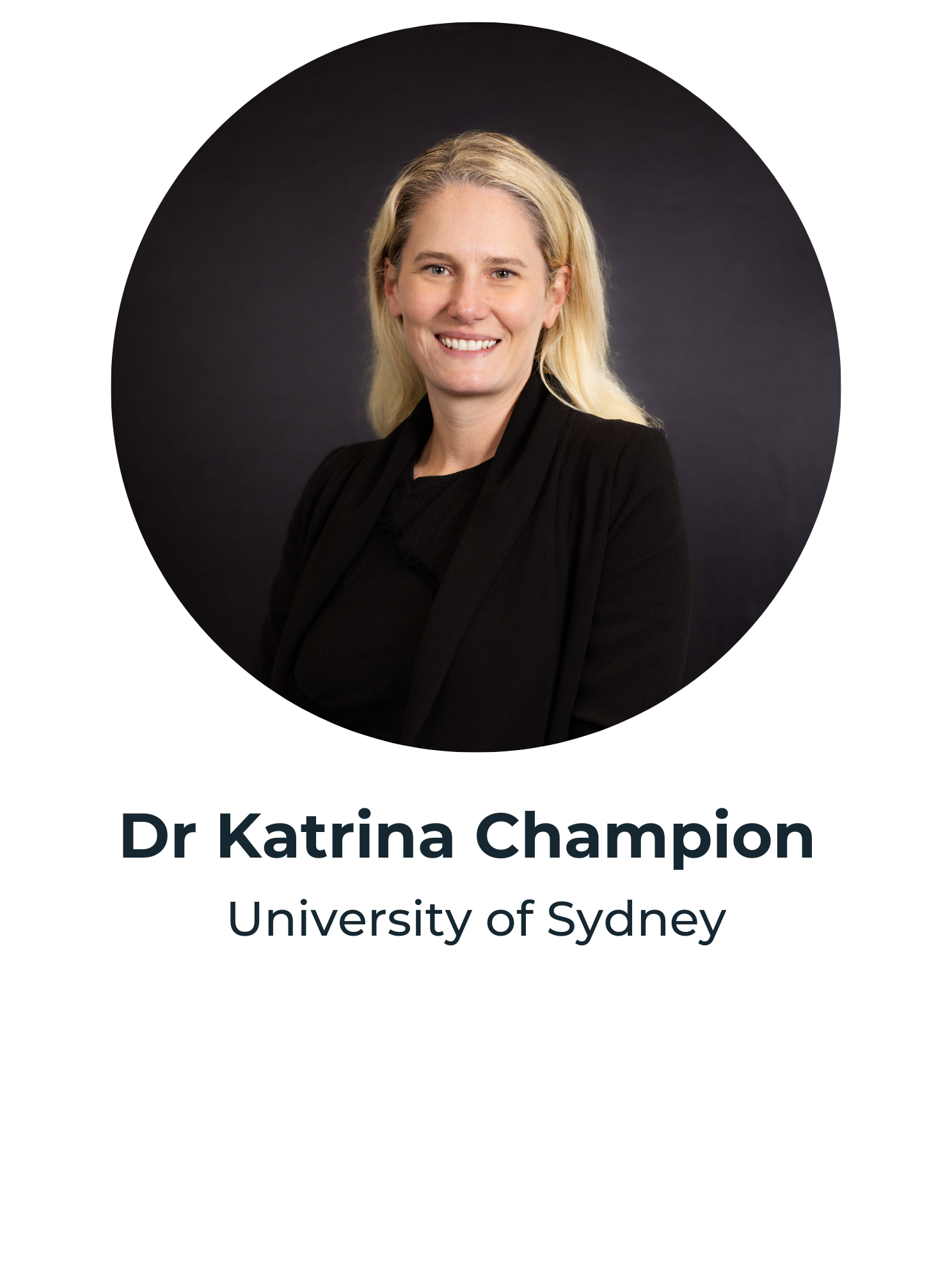 Dr Katrina Champion is a Senior Research Fellow at the Matilda Centre for Research in Mental Health and Substance Use and the Sydney School of Public Health, University of Sydney. Katrina focuses on the relationships between poor mental health and habits, such as sleep, screen time and physical activity. She develops, evaluates and disseminates digital interventions to improve adolescents’ physical and mental health.